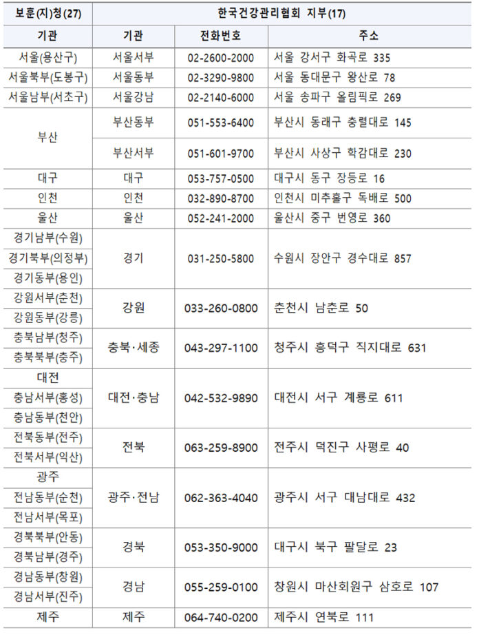 보다 자세한 사항은 보훈상담센터(1577-0606)와 관할 보훈(지)청에 문의한 뒤 한국건강관리협회 각 지부로 예약하면 된다.