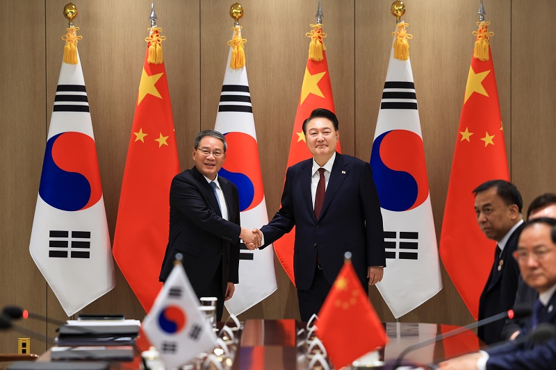 윤 대통령, 한일중 정상회의 계기 중국 리창 총리와 정상회담