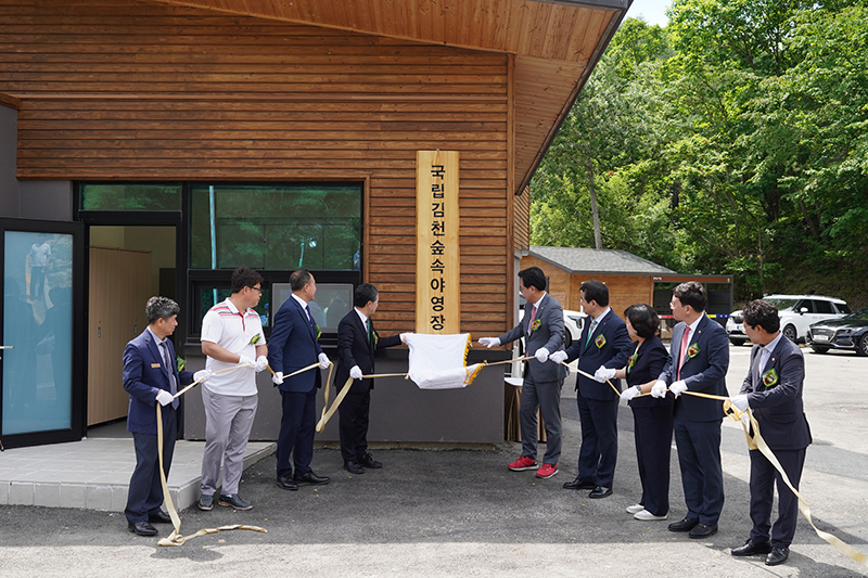 산림청은 지난 25일 총 30마리 동시 수용이 가능한 규모의 국립 최초 반려견 전용 산림휴양시설인 ‘국립김천숲속야영장’ 개장식을 갖고, 다음 달 15일부터 본격 운영을 시작한다고 밝혔다.