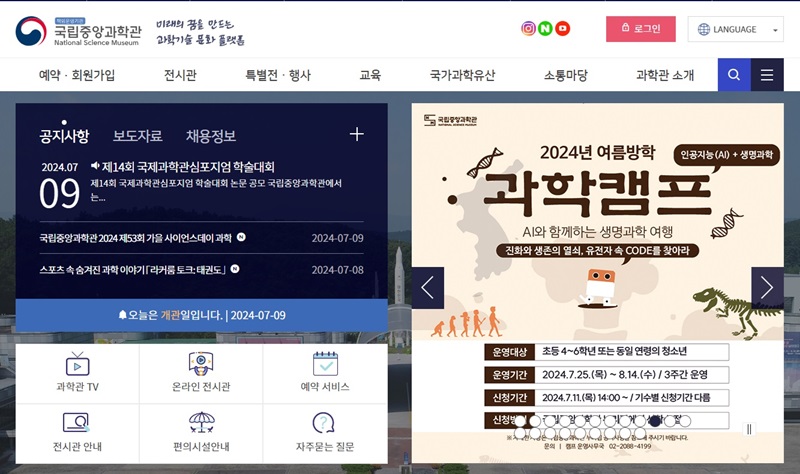 참가 접수는 여름방학 과학교실의 경우 10일 오전 10시, 여름방학 과학캠프는 11일 오후 2시부터 선착순으로 모집하며 자세한 내용은 국립중앙과학관 누리집(www.science.go.kr)에서 확인할 수 있다.